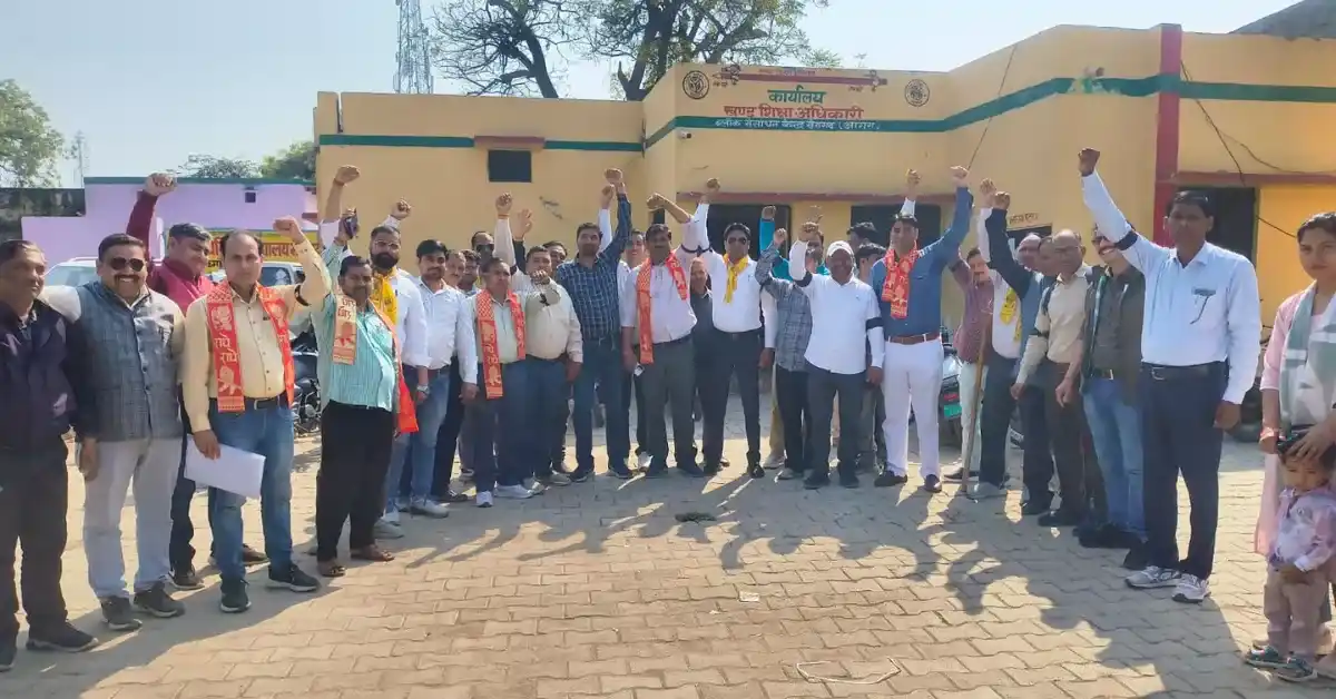 खेरागढ़ शिक्षक प्रदर्शन 2026, टीईटी अनिवार्यता विरोध आगरा, उत्तर प्रदेशीय प्राथमिक शिक्षक संघ आंदोलन, काली पट्टी बांधकर विरोध, आगरा बीआरसी खेरागढ़ प्रदर्शन, 26 फरवरी जिला मुख्यालय धरना, यूपी शिक्षक संघ समाचार, TET protest Agra 2026, शिक्षकों का आंदोलन आगरा, आगरा ताजा शिक्षा खबर